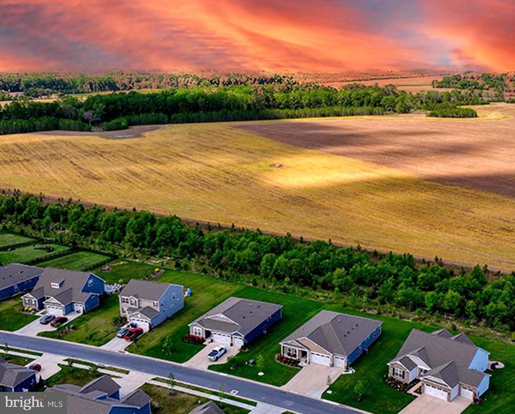 With a 3-car garage, thoughtful upgrades, and a floor plan designed to capture backyard views from the moment you step inside, this elegant ranch home built in 2023 home offers the perfect balance of natural beauty, elegance, value, and convenience. Just minutes from Broadkill Beach and historic downtown Milton, this single-level, low-maintenance ranch features over 2,300 square feet of thoughtfully designed space and VERY low electric bills of about $150 per month. You’ll love the open-concept layout, split floor plan with wide luxury vinyl plank flooring, crown molding, tray ceilings, and architectural details that elevate every space. Gourmet kitchen with propane gas cooktop, wall oven, custom backsplash, quartz countertops, and champagne color finishes, and upgraded InstaView refrigerator. The private owner’s suite is a retreat of its own, tucked to one side of the home with two spacious walk-in closets and a spa-inspired bath boasting dual vanities, a private water closet, and a huge, luxurious accessible European-style walk-in/roll-in shower that is both elegant and practical for aging in place. Three additional bedrooms and two full baths provide space for guests, family, or a home office. A screened porch overlooks the serene backdrop of wetlands, where sunrises and sunsets create a truly tranquil setting. Practical luxury continues with a 3-car garage upgraded with a durable, high-performance coating, full yard irrigation, and a screened porch with yard backing to the woods with stunning sunrise and sunset skies. Located in a vibrant and active community with resort-style amenities like pickleball courts, a clubhouse, a pool, a playground, a dog park, and community events like movie nights and Food Truck Thursdays. Enjoy the best of both worlds, just minutes from Sussex County’s top attractions while surrounded by nature and small-town charm, all without sacrificing location or convenience. Flood insurance is NOT required! No city/town taxes! Fences are allowed.